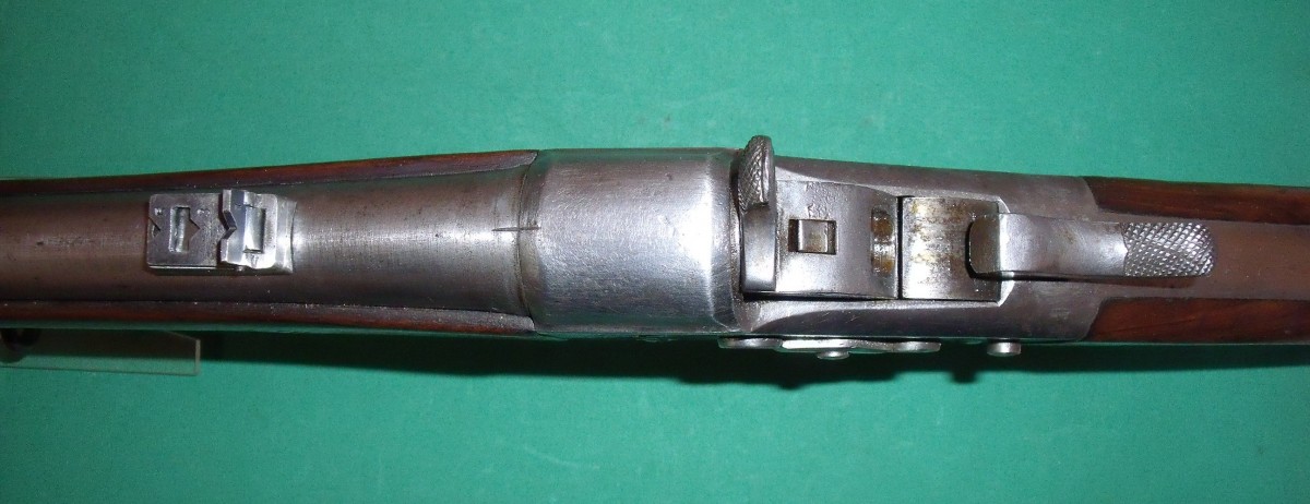 Carabine de cavalerie Espagnole Tercerola Remington Modelo 1871, sur brevet Remington Rolling Block 1866, fabrication Armeria Oviedo 1871 (total de 22 880 ex.), calibre 11,15x58R (43 Spanish), canon de 58,6cm, intérieur avec de belle rayures, marquages parfaits sur le côté droit du boitier de culasse « AR.O » couronné, pour Armeria Oviedo, année 1871, modèle sans anneau de selle, finition poli blanc, indicateur de chargement sur le dessus du bloc culasse, crosse et longuesse en noyer en parfait état, avec initiales » PL ». Parfait état. Catégorie collection D2°e, achat et détention libres. Réf. : 2-2-042 Cette arme est vendue |